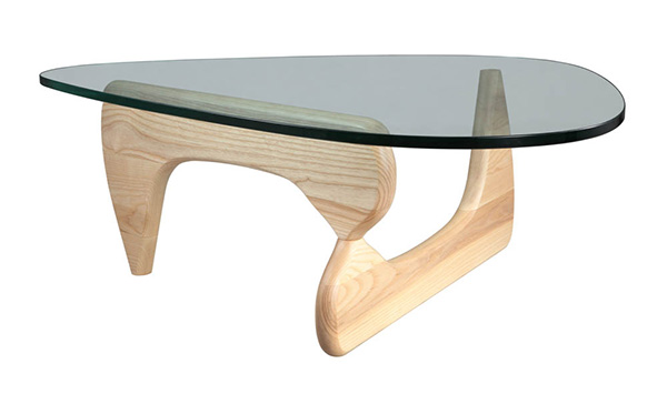 The perfect balance literally between art and furniture. Sculptor Isamu Noguchi created his distinctive table by joining a curved, wood base with a freeform glass top. The ethereal result does not diminish the practical design a sturdy and durable table. This marriage of sculptural form and everyday function has made the EM coffee table an understated and beautiful element in homes and offices since its introduction in 1948.