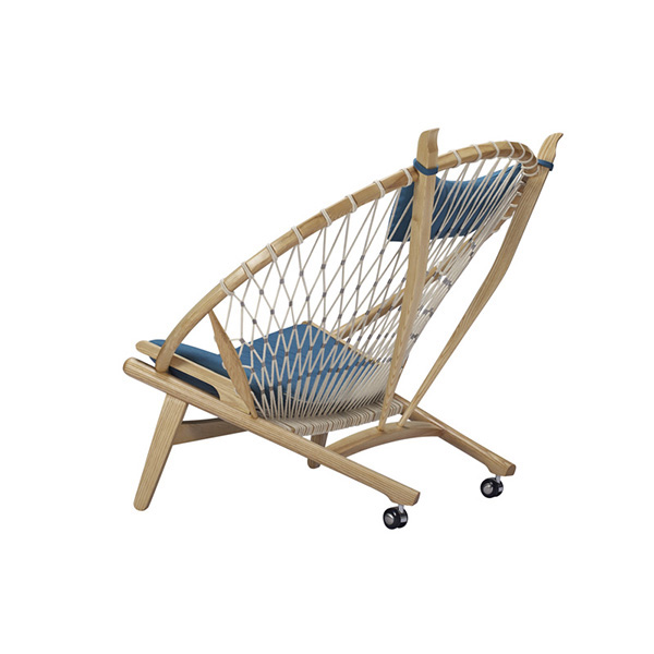 Surprising comfort is derived from a generously padded, concave cushion that is suspended over the rope weave. A small pillow suspends from the two beams supporting the head. The frame is crafted from solid wood; we love the durable organic appeal. The Hans Wegner Hoop Chair contributes real-world functionality, architecture & historic modernism no matter which room it ends up in tomorrow.