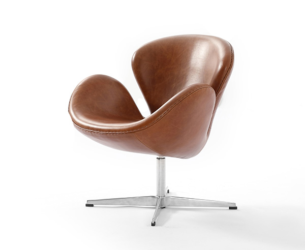 Inspired by the original design by Arne Jacobsen, this reproduction by Manhattan Home Design is a marvelous illustration of the whimsical side of the mid-century furniture design. This playful piece of furniture is instantly recognizable thanks to its curving fiberglass shape and beautiful armrests which cradle the seat.