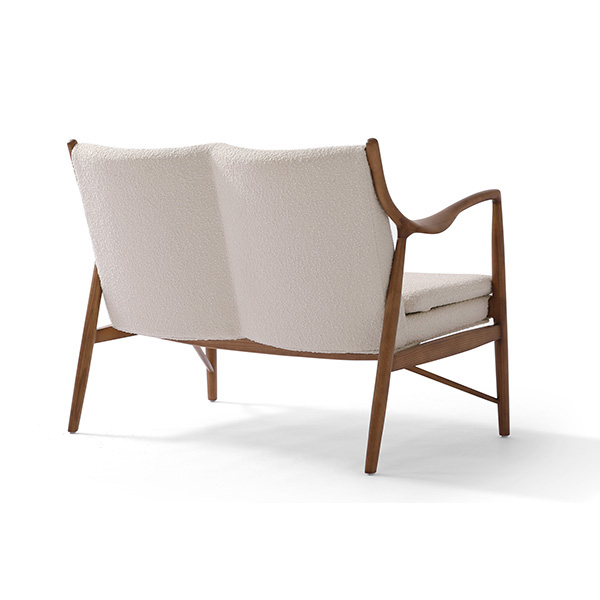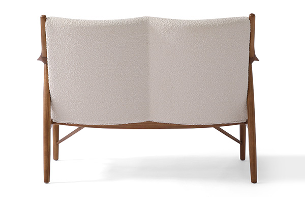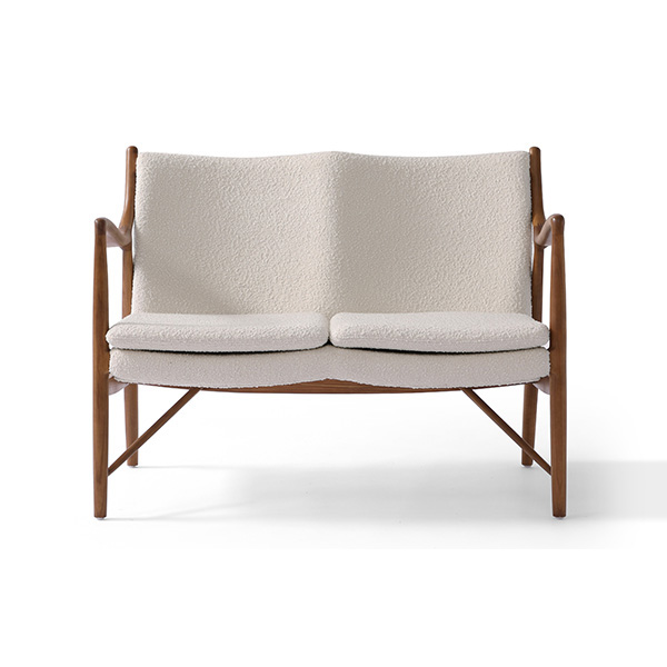 A well-recognized icon of mid-century modern design. Free-flowing, airy and elegant in concept. The original series was created in 1945 by Danish mid-century modern furniture designer Finn Juhl. In handcrafting this mid-century modern masterpiece, the Kardiel Copenhagen '45 combines quality material such as solid American Walnut timbers and durable boucle upholstery with attention to the original intricate design detail.