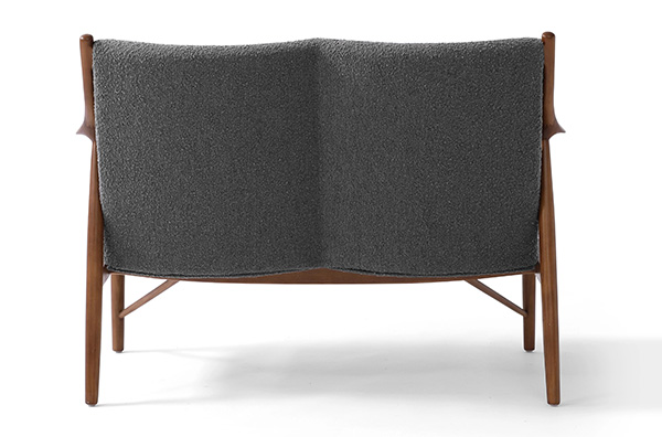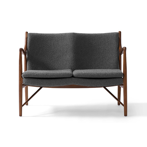 A well-recognized icon of mid-century modern design. Free-flowing, airy and elegant in concept. The original series was created in 1945 by Danish mid-century modern furniture designer Finn Juhl. In handcrafting this mid-century modern masterpiece, the Kardiel Copenhagen '45 combines quality material such as solid American Walnut timbers and durable boucle upholstery with attention to the original intricate design detail.