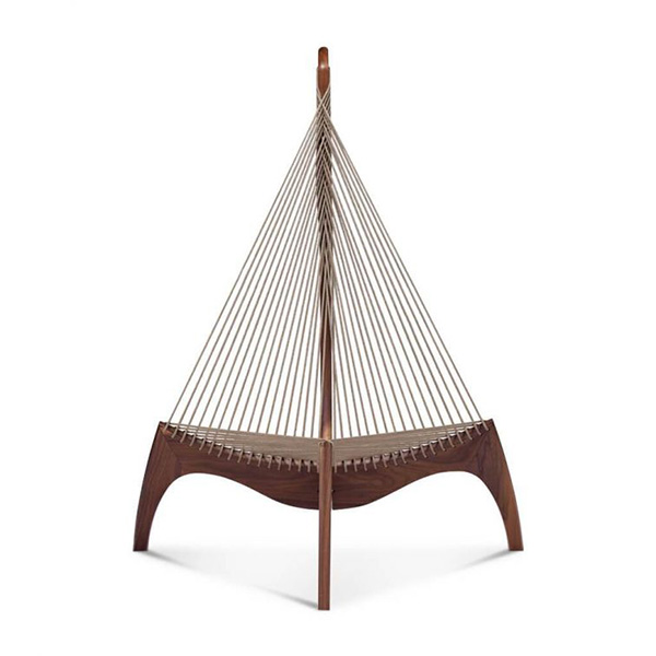Designed by Jorgen Hovelskov, the Harp chair is a a unique piece of modern Danish design. Inspired by the arching curves of the bow and stern of a Viking boat, the chair was originally named the Viking Chair when exhibited for the first time in 1963. The woven rope's resemblance to the strings of a harp, meant it was later named by a journalist as the Harp Chair.