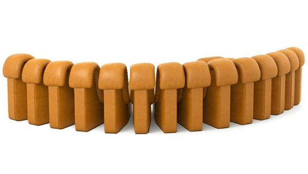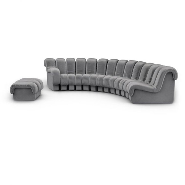 The DS 600 Sofa "non-stop" sofa was designed by Ueli Berger in 1972. Named after a mythical alpine creature, the Tatzelwurm, the DS sectional sofa is composed of narrow modular elements that can be expanded to create seemingly endless shapes. It is designed to allow for a combination of varying elements, rendering it possible to create a multitude of compositions. By always using the same module, you could technically create the longest sofa in the world, and in your space, you could create your unique design based on the needs of the environment. The sofa can be configured in countless different ways - from the iconic curve (as shown), an arc form or even a straight line - and everything in between.