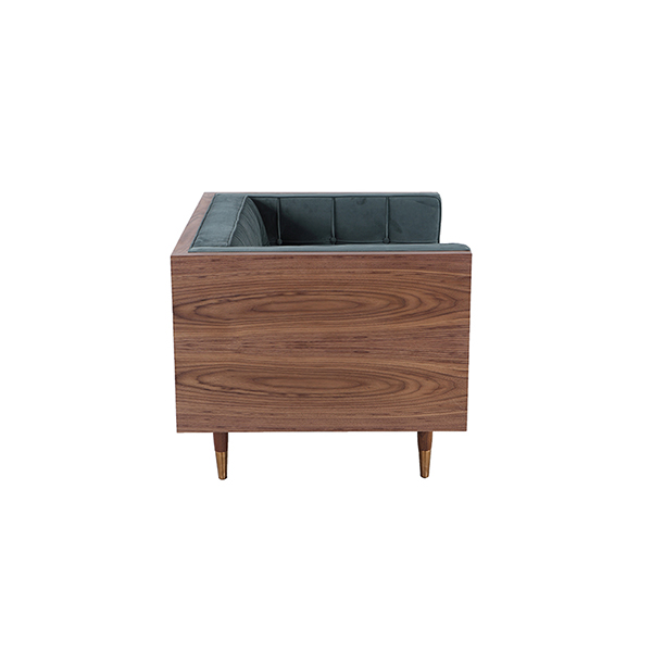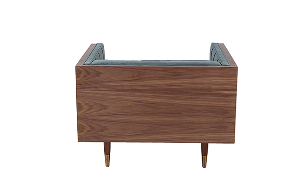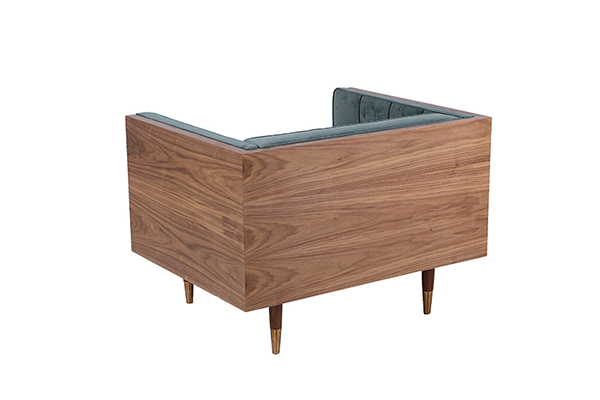 Clever, fresh & inspired by the 1950's modernist movement. At first glance, it may seem like a straight-up seating angle. However, the frame design within the wood outer frame is intently engineered with a degree of backward angle seating, tilt to the back. This combined with the soft, low profile full-length interior cushion, provides a surprisingly comfortable back pitched lounging experience.