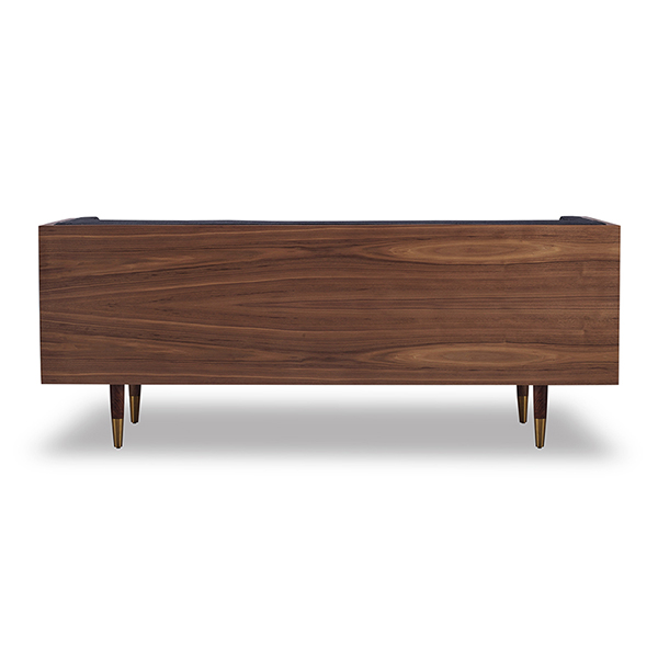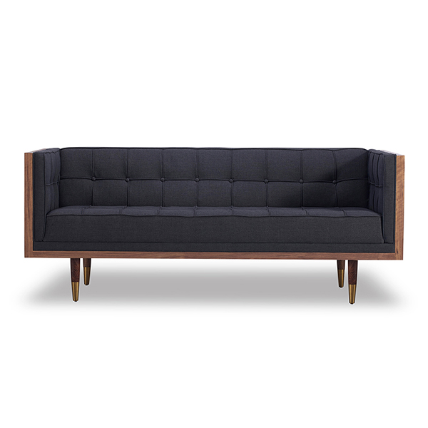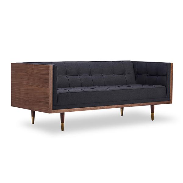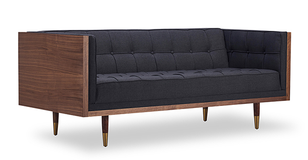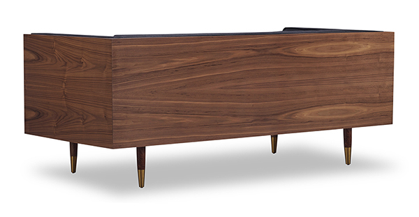 WOODROW MID-CENTURY MODERN LOVESEAT Clever, fresh & inspired by the 1950's modernist movement. At first glance, it may seem like a straight-up seating angle. However, the frame design within the wood outer frame is intently engineered with a degree of backward angle seating, tilt to the back. This combined with the soft, low profile full-length interior cushion, provides a surprisingly comfortable back pitched lounging experience.