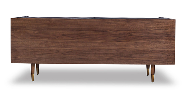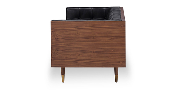 WOODROW MID-CENTURY MODERN LOVESEAT Clever, fresh & inspired by the 1950's modernist movement. At first glance, it may seem like a straight-up seating angle. However, the frame design within the wood outer frame is intently engineered with a degree of backward angle seating, tilt to the back. This combined with the soft, low profile full-length interior cushion, provides a surprisingly comfortable back pitched lounging experience.
