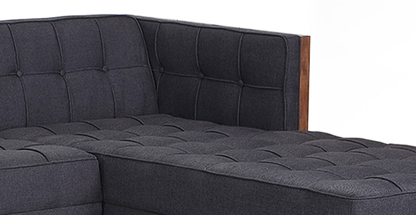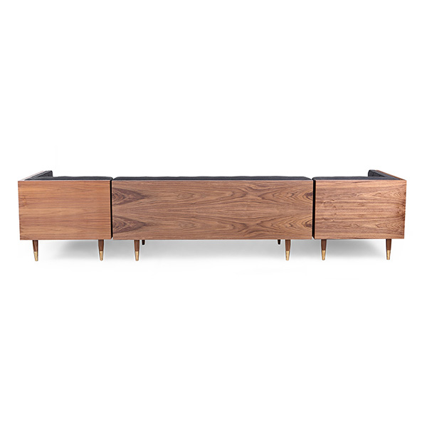 WOODROW MID-CENTURY MODERN SOFA U-SECTIONAL Clever, fresh & inspired by the 1950's modernist movement. At first glance, it may seem like a straight-up seating angle. However, the frame design within the wood outer frame is intently engineered with a degree of backward angle seating, tilt to the back. This combined with the soft, low profile full-length interior cushion, provides a surprisingly comfortable back pitched lounging experience.