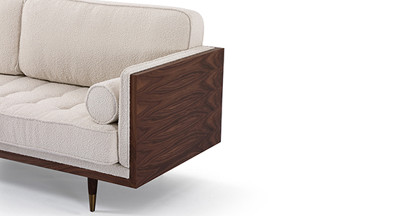 Feels like we’re introducing tomorrow's classic. Built for laid back lounging, Skandi is our luxe contemporary, most relaxed, statement sofa. The one of a kind grain fingerprint only American Walnut can provide; what a savvy way to personalize your space. And we can vouch for the comfort. It's something we’ve engineered into the generous full-length seat cushion and supporting spring tension system.