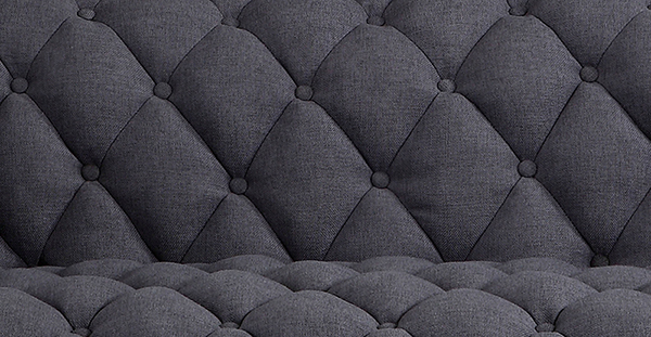 The striking full-body classic quilt button tufting is upholstered entirely by hand. The body is fully integrated, flowing from the seat, to back to arm in one gorgeous piece. An heirloom in the making, the cushion is multi-density for comfort and the frame is traditional wood construction for years of durable use.