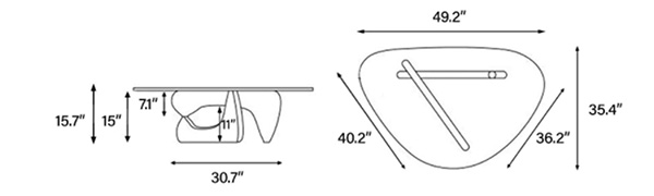 Table Width: 49.2" x Depth: 35.4" x Height: 15.7"