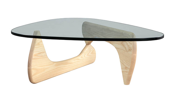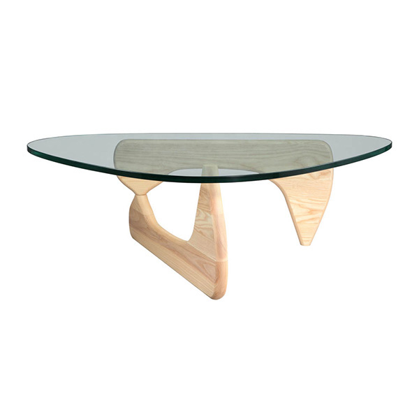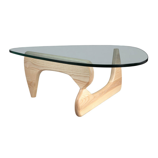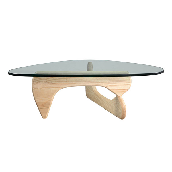 The perfect balance literally between art and furniture. Sculptor Isamu Noguchi created his distinctive table by joining a curved, wood base with a freeform glass top. The ethereal result does not diminish the practical design a sturdy and durable table. This marriage of sculptural form and everyday function has made the EM coffee table an understated and beautiful element in homes and offices since its introduction in 1948.